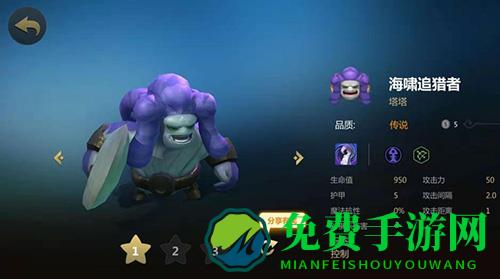 技能:凝视(使4格范围内面向自己的敌方棋子攻速降低20%,持续3秒,期间持续面向自己超过2秒的敌方棋子会被石化2秒。CD20秒)海妖是猎人阵容中前期的一个控制型棋子,技能范围广非常好用,但是1星的海妖回蓝有点慢,如果有回蓝装不妨丢给她,2星后可以把她放在前排,追2星即可。