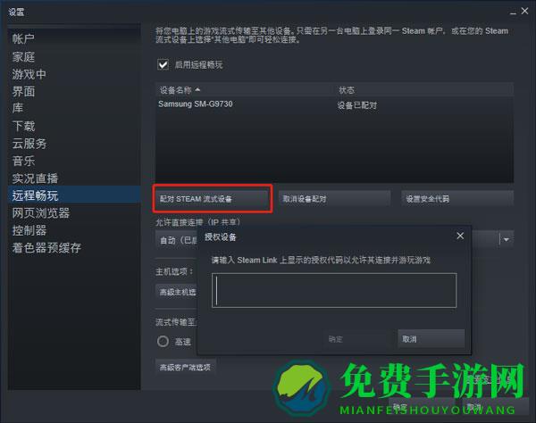 3、然后点击配对steam流式设备,输入手机端的pin码即可开始连接。