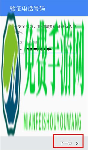 3、输入验证电话号码,一般使用手机号,输入后点击下一步按钮;