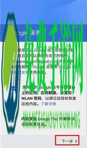 8、在google服务页面继续点击下一步按钮;