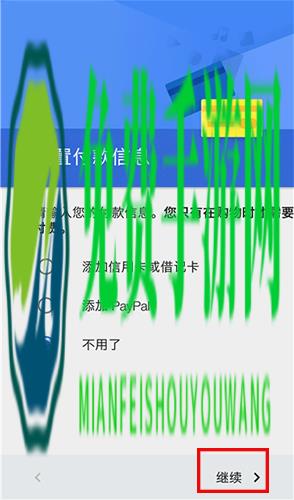 9、付款信息勾选“不用了”选项,点击继续按钮;