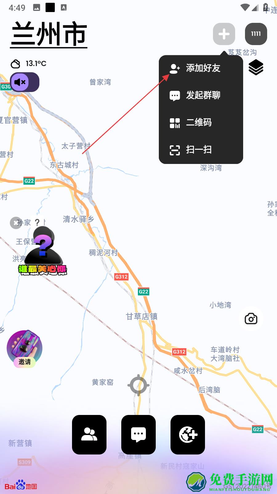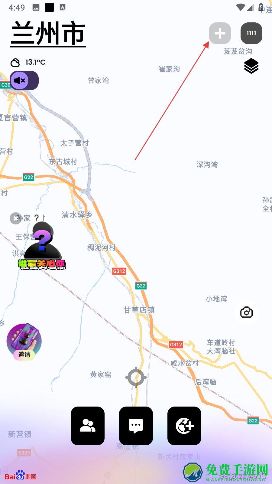 3、随后,大家在创建了自己当前位置之后,可以进入到首页,并点击右下角的地球按钮,如下图;