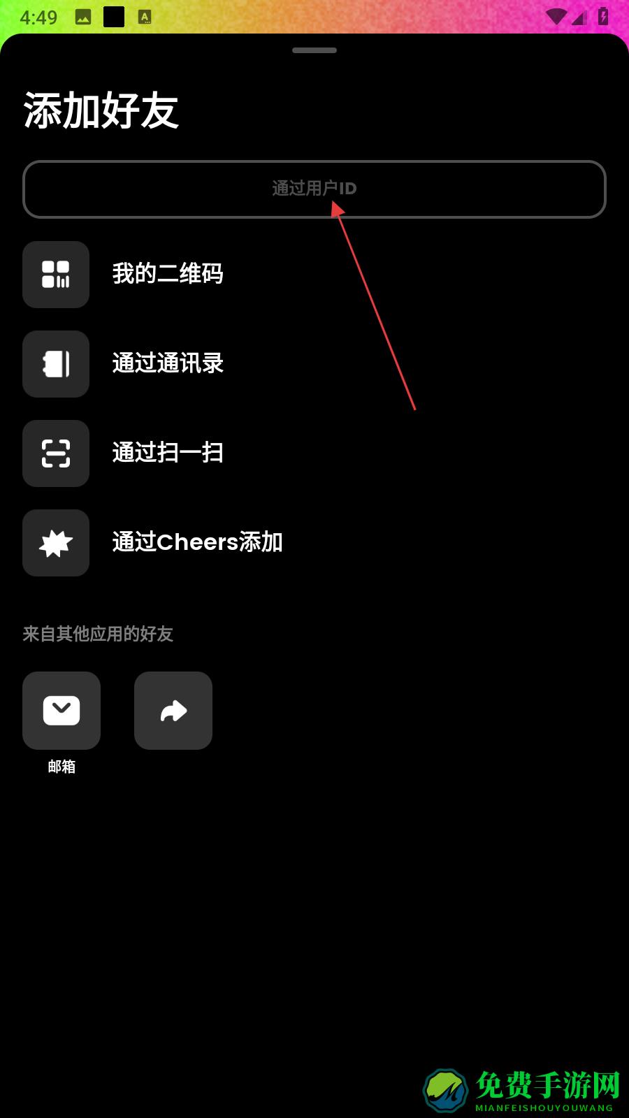 3、进入添加好友界面后,点击通过用户ID的搜索框。
