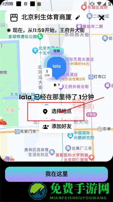 4、通过移动的方式来获取你需要的位置,并点击【我在这里】,随后就会自动保存;
