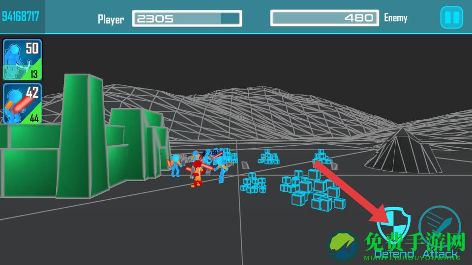 4、在战斗过程中,若敌人发起强势攻击,点击箭头指向的Defend防御按钮,让己方单位进入防御状态,减少受到的伤害。