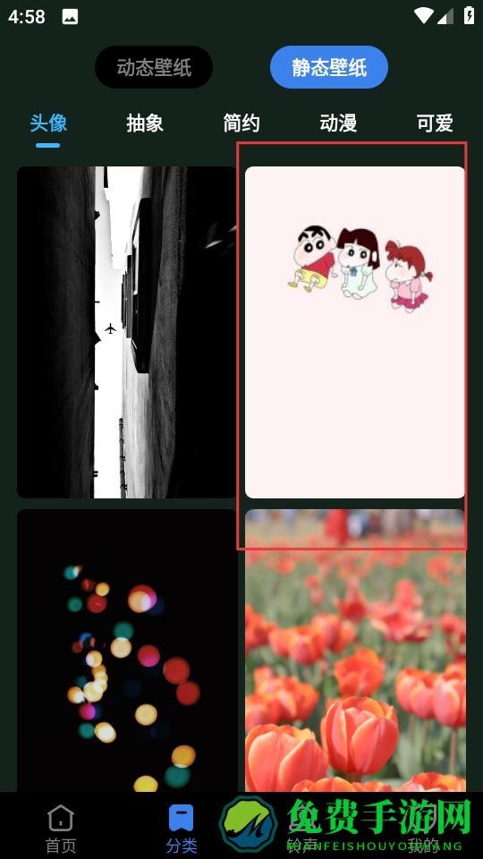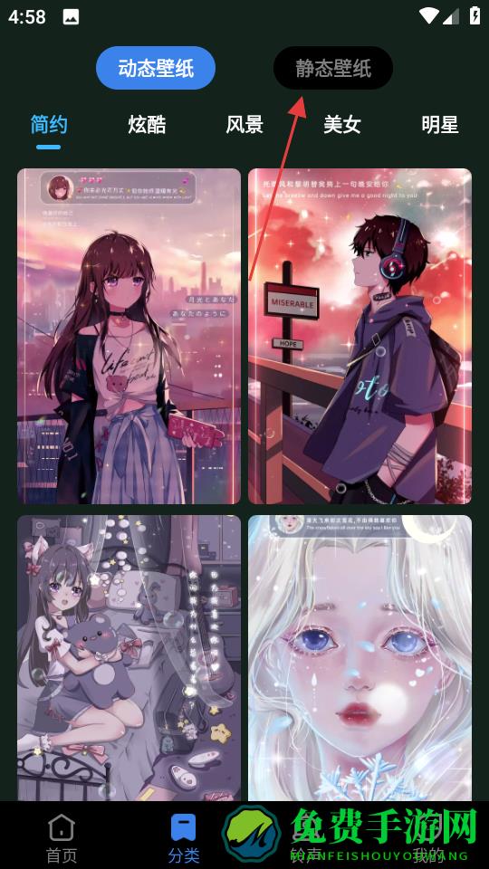 2、在分类页面,点击静态壁纸选项,进入静态壁纸页面。