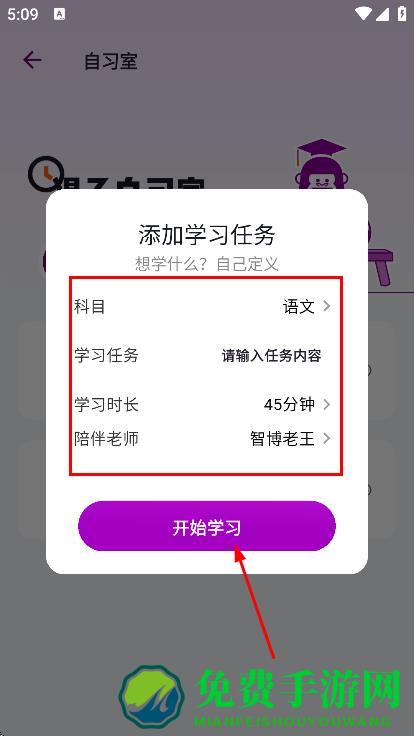 3、设置科目、学习任务等信息后,点击开始学习,进入专注学习页面。