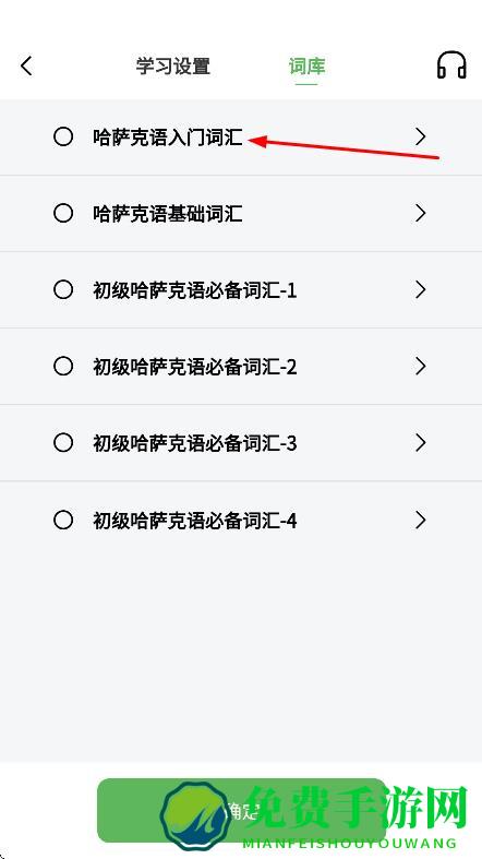 2、在学习页面,选择词库,进入对应学习页面。