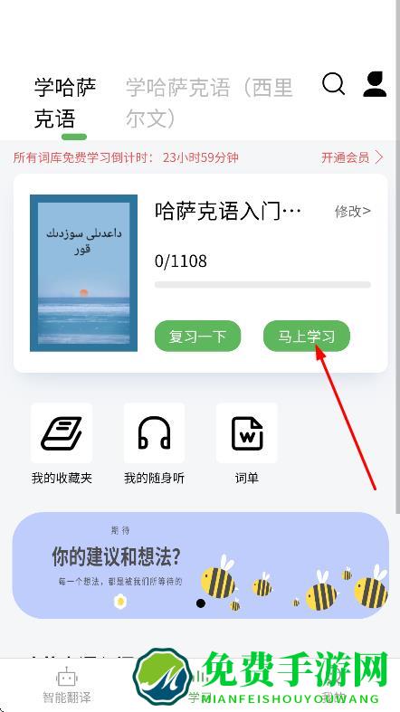 3、在学习页面,点击马上学习,进入词汇学习界面。