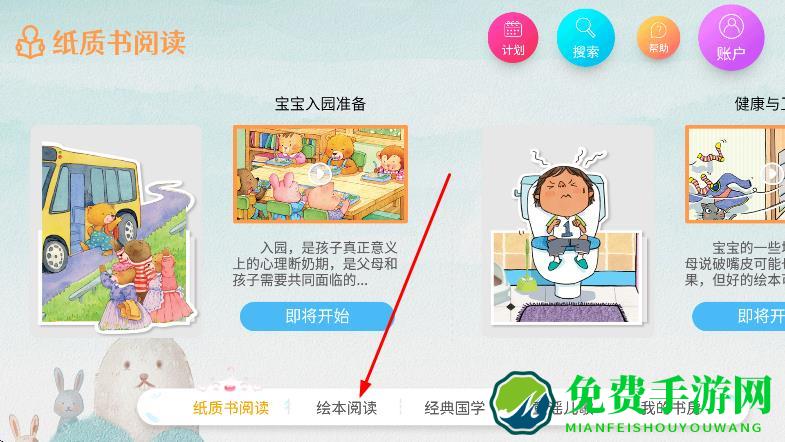 1、在软件页面,点击绘本阅读,进入绘本阅读页面。