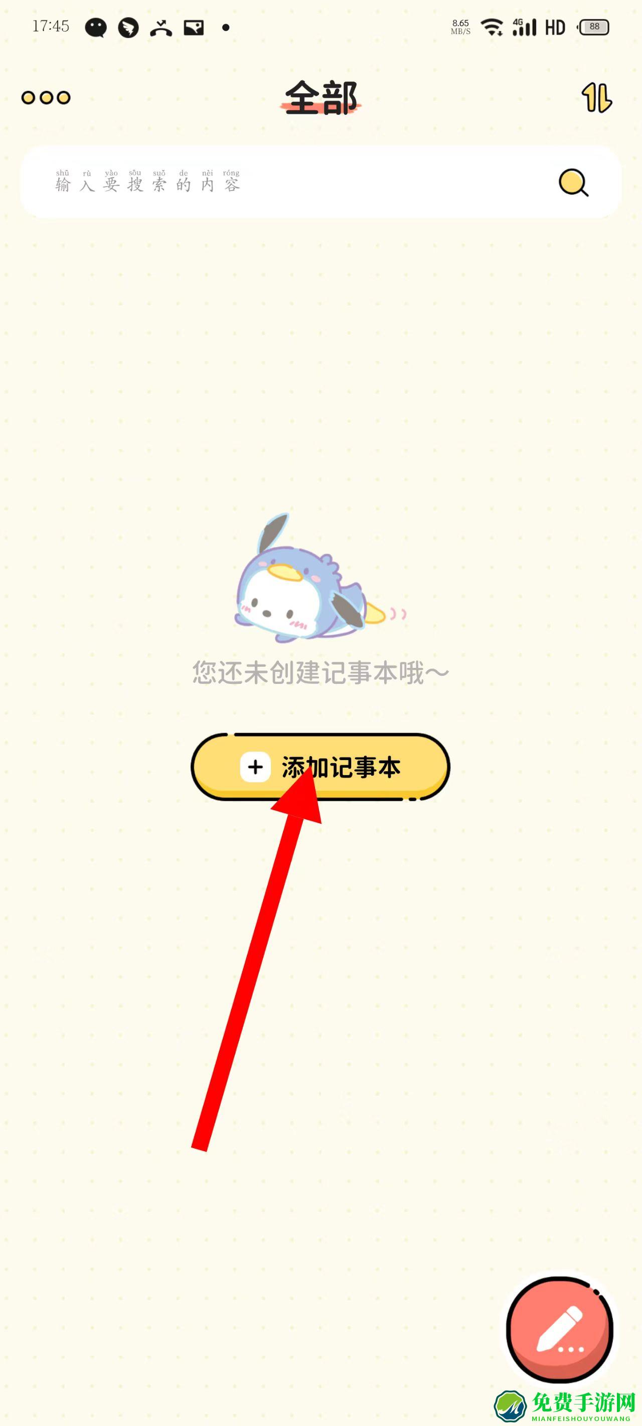 1、打开每日记事本,点击添加记事本按钮,进入记事本编辑页面。