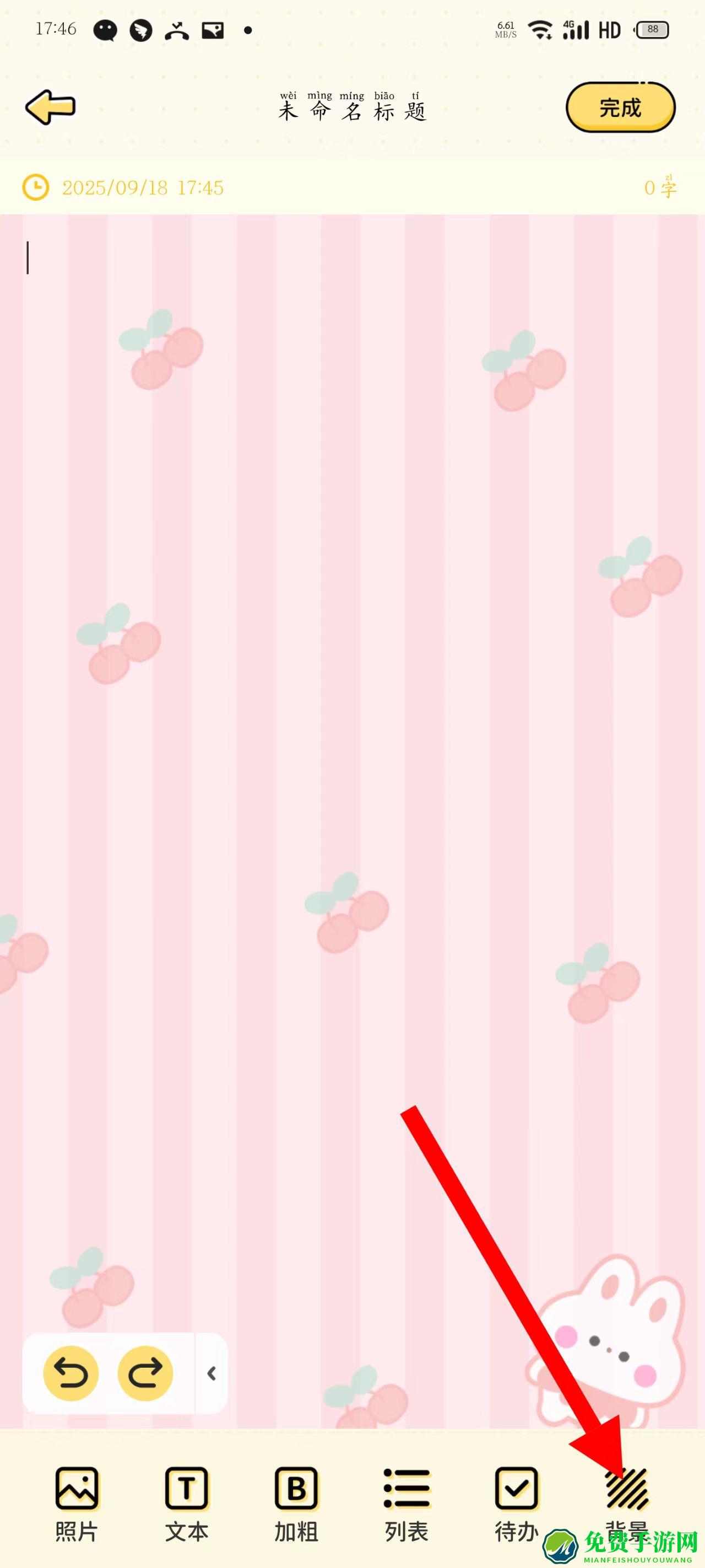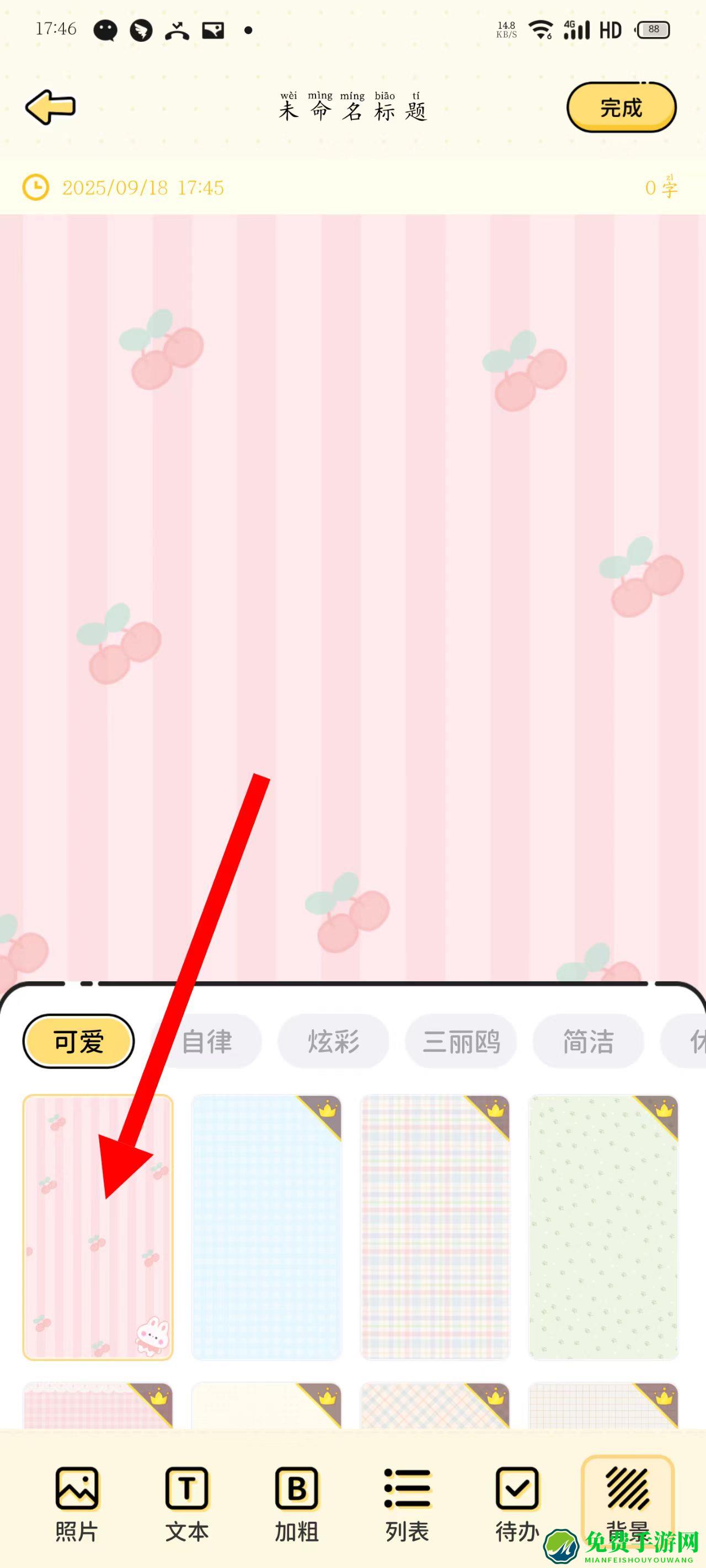 2、在编辑页面,点击底部背景选项,选择喜欢的背景样式。