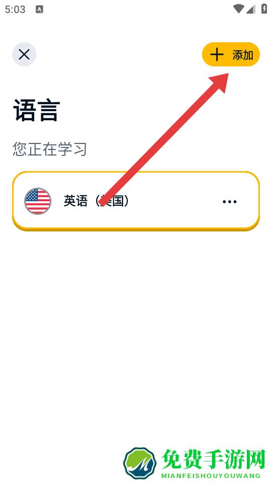2、在语言选择界面,点击右上角+添加按钮,进入添加语言页面。