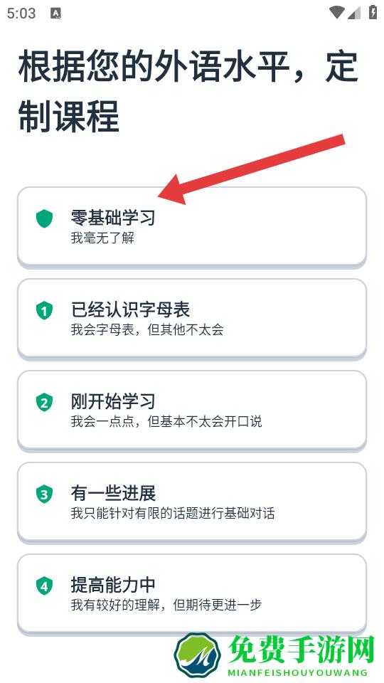 4、进入课程定制页面,选择对应的外语水平,即可完成语言切换。