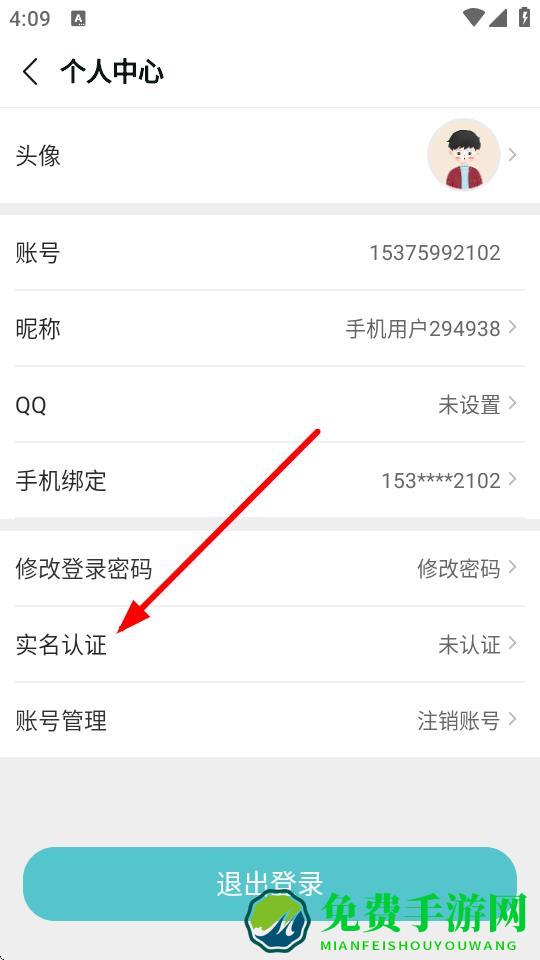 3、在个人中心页面里,点击实名认证选项。