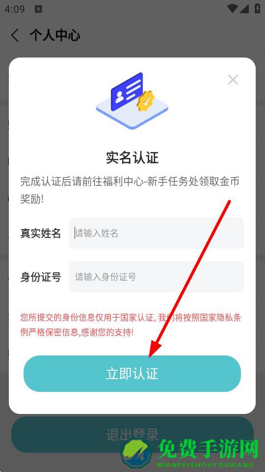 4、在弹出的实名认证窗口中,输入真实姓名和身份证号,点击立即认证完成实名认证。