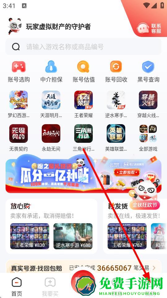 1、页面中将会看到有超多的游戏账号可以交易,如果你要账号交易点击中间这里进入交易页面;