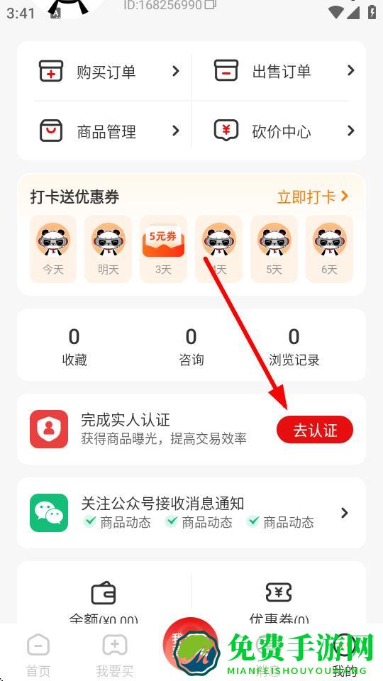 2、在我的页面中,找到完成实人认证板块,点击去认证按钮。
