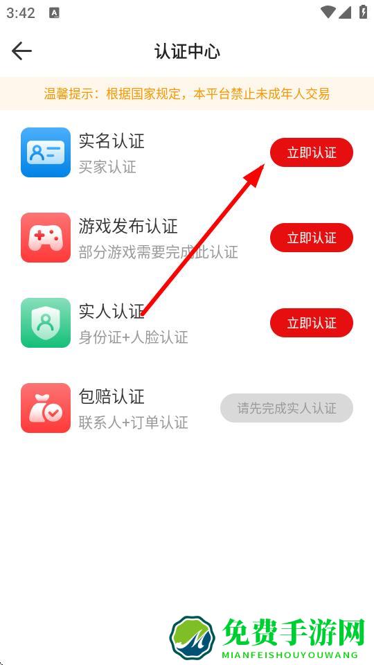 3、进入认证中心页面后,点击实名认证右侧的立即认证选项。