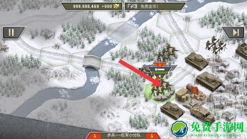 1、在雪地战场中,操控步兵单位,利用其在地形中的优势,占据战略点位,为后续战斗奠定基础。
