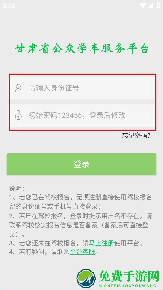 3、在登录页面,找到“请输入身份证号”输入框,输入自己的身份证号,然后在密码输入框中输入初始密码123456。