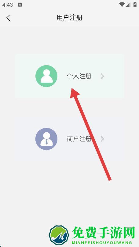 3、进入用户注册页面后,点击个人注册选项。