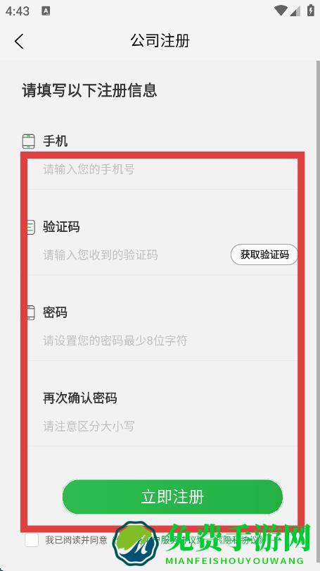 4、根据要求填写信息,点击立即注册,即可完成登录。