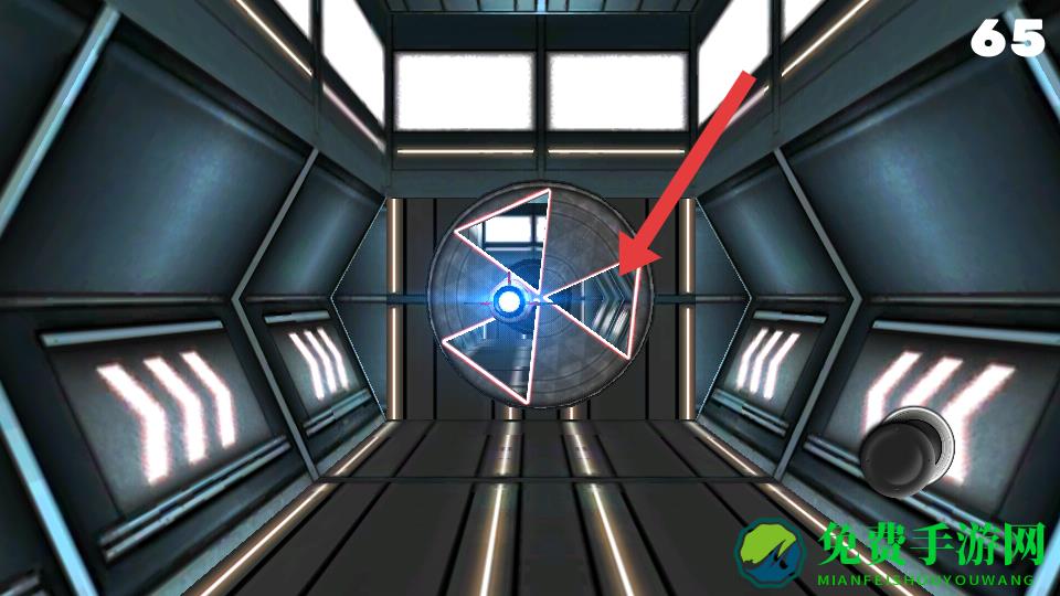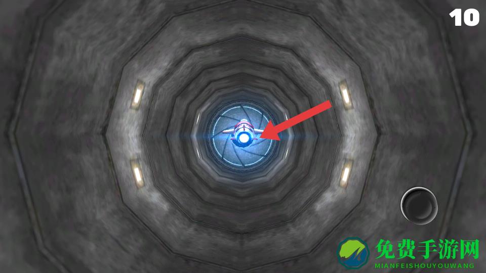 1、操控飞机在六边形隧道中飞行,瞄准中心的蓝色光圈区域,保持飞行方向,顺利通过隧道,同时留意右上角的分数变化。