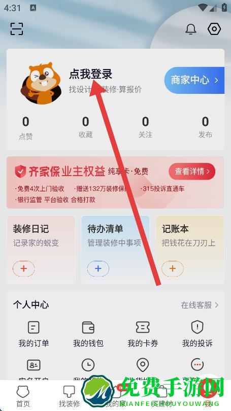 1、打开齐家装修网,点击底部导航栏右下角的我选项。