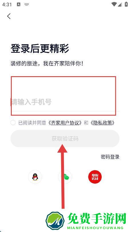 3、输入要登录的手机号并点击获取验证码按钮。