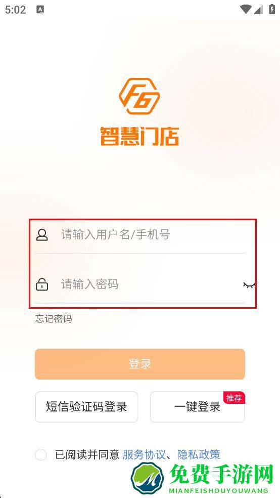 1、打开智慧门店APP,会弹出服务协议和隐私政策提示框,仔细阅读相关内容后,点击“同意”按钮,进入APP登录界面。
