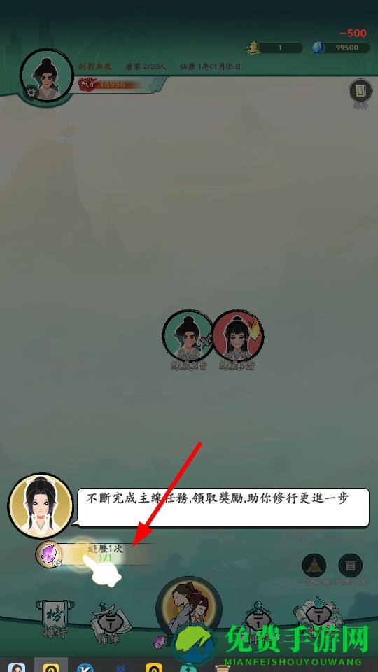3、不断完成主线任务,领取奖励,奖励可用于提升角色的修行能力,推进游戏进度,游历1次任务主线任务。
