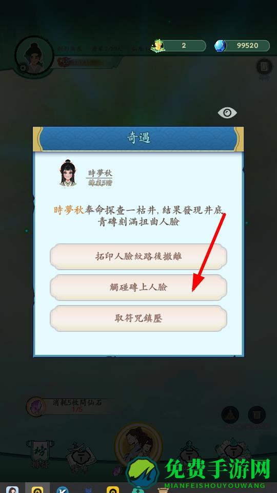 4、在奇遇事件中,面对枯井的扭曲人脸,选择触碰碑上人脸可触发新的剧情和挑战,为游戏增加了随机性。