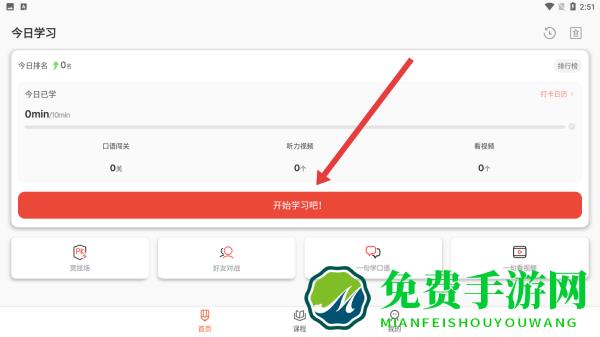 1、在今日学习界面,点击红色开始学习吧!按钮,进入听力学习板块,开启当日英语学习流程,为后续练习奠定基础。