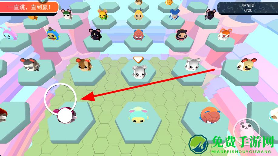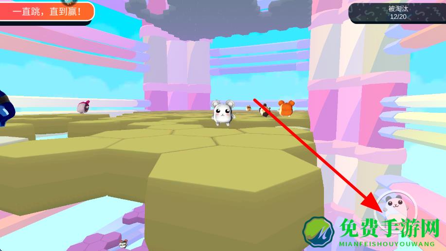 4、点击右下角的跳跃按钮,让角色进行跳跃,躲避危险区域,同时也要注意其他对手的动态,避免被干扰,努力成为最后的跳跃者。