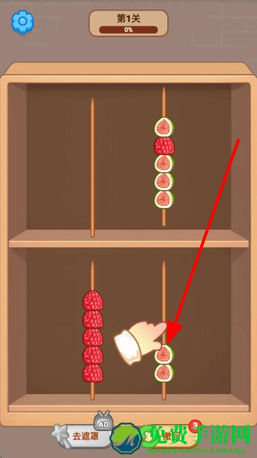 2、在摆放水果过程中,若操作有误,可点击撤回按钮,能取消之前的错误操作,让玩家有机会重新调整水果的摆放位置,保障糖葫芦串制作的准确性。