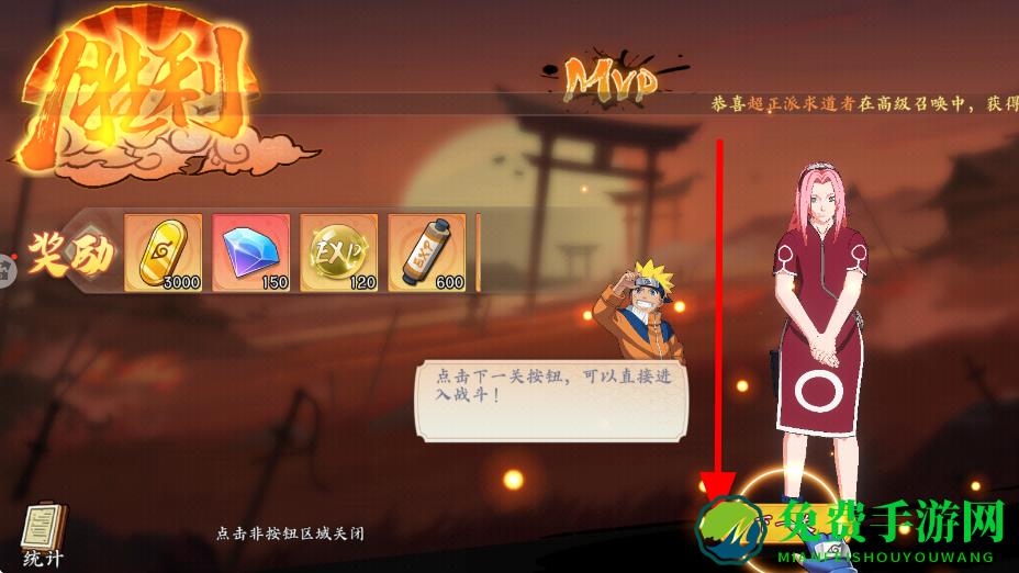 4、成功击败敌人,达成关卡胜利后,点击下一关,即可进入后续关卡,继续冒险,挑战更强的敌人,获取更多奖励。