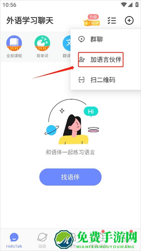2、点击加语言伙伴。