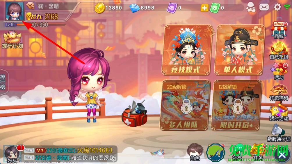 1、打开弹弹堂游戏,进入游戏主界面,点击左上角的角色头像。