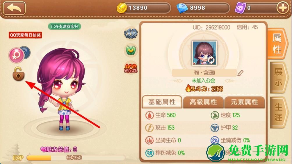 2、在角色信息界面中,点击左侧的安全锁图标。