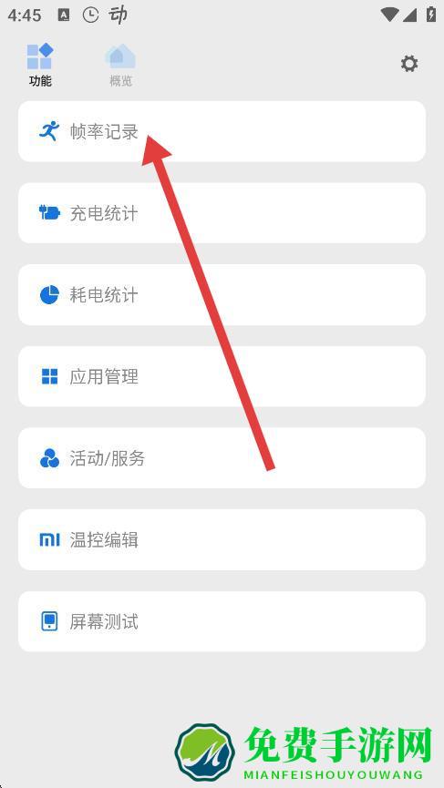 2、在功能页面中,找到并点击帧率记录选项。