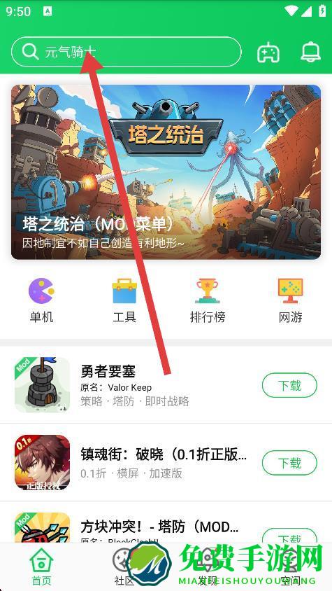 1、打开葫芦侠3楼,点击首页顶部的搜索框,进入搜索页面。