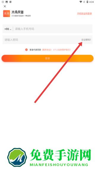 1、在木鸟民宿登录界面中,点击右上角的账号密码登录,更改登录方式。