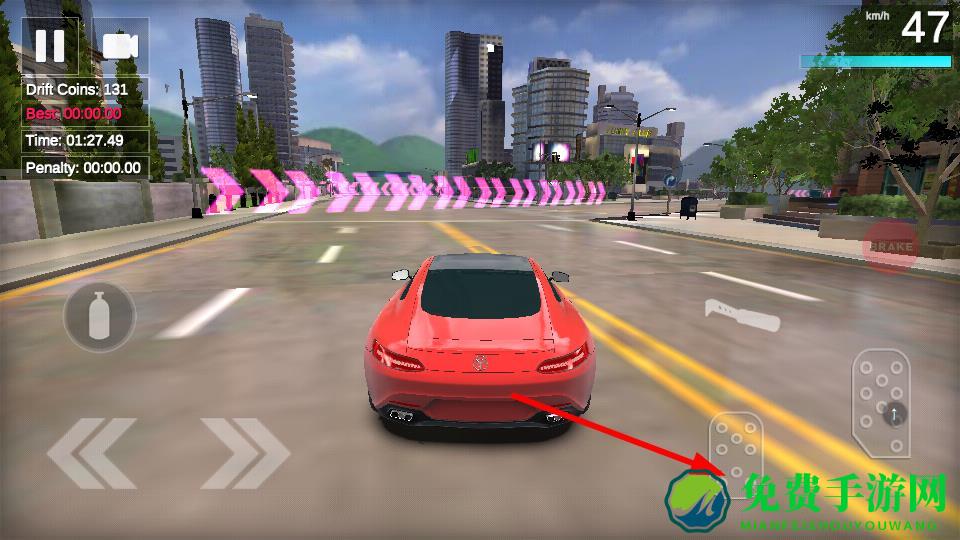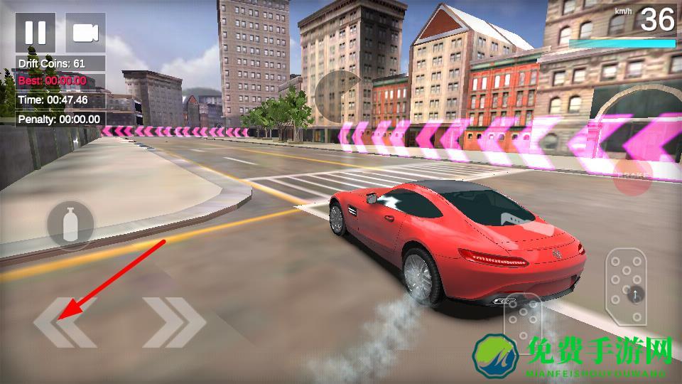 2、在转弯时,点击左侧左向箭头按键,可控制车辆向左转向,顺利通过弯道,避免因转向不当偏离赛道。