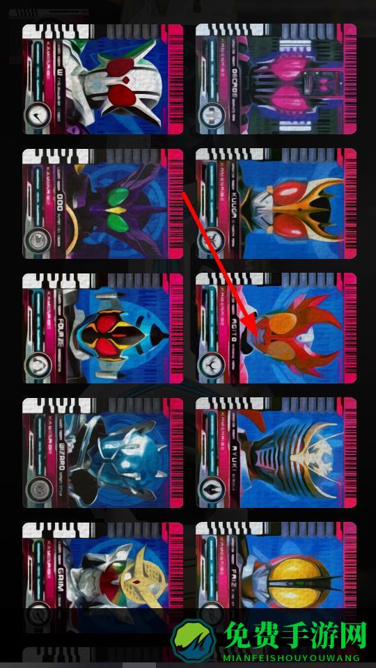 1、在腰带界面中,点击带有骑士形象的卡片区域,插入对应骑士卡片,变身使用骑士能力的操作。