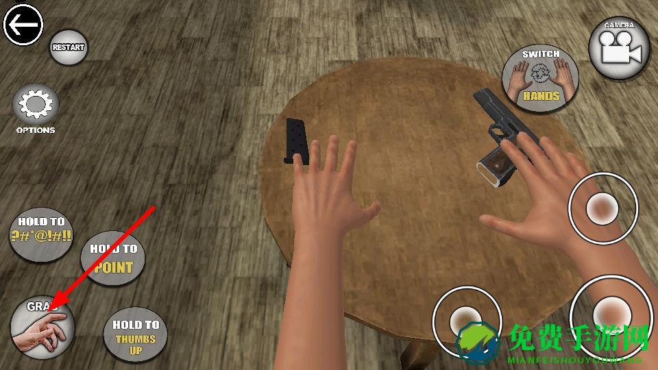 1、点击GRAB的按键,操控了手部进行动作,拾取桌上枪械部件,组装或使用枪械基础操作。