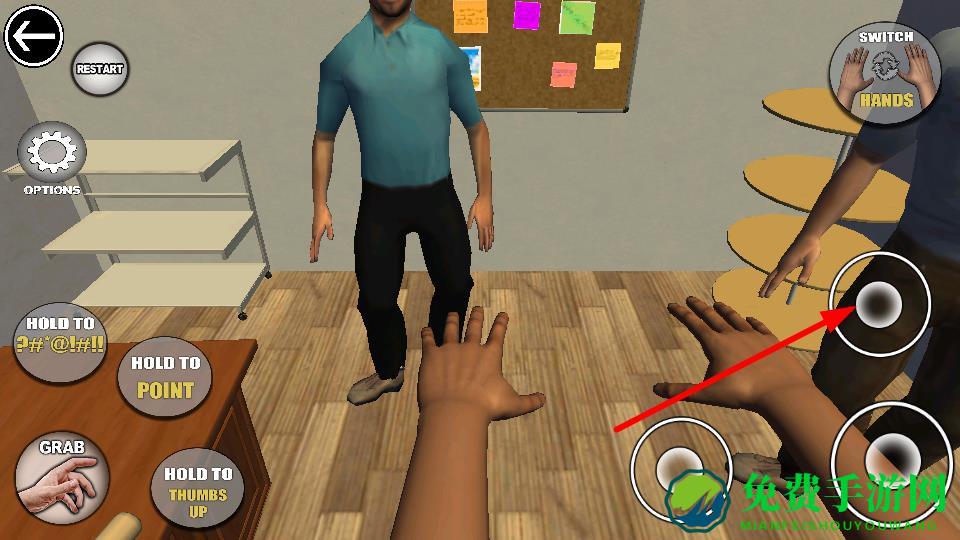 4、点击右侧的操作按键,操控手部进行相应动作,场景中的人物或物品互动,推动任务。