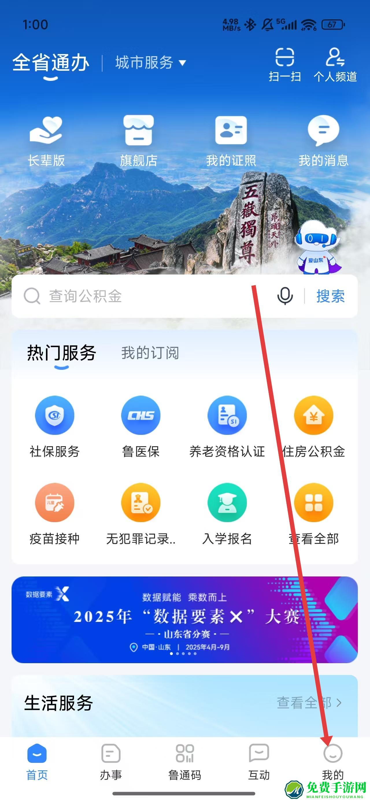 1、在爱山东app首页中,可以点击底部我的按钮,开始登录操作。