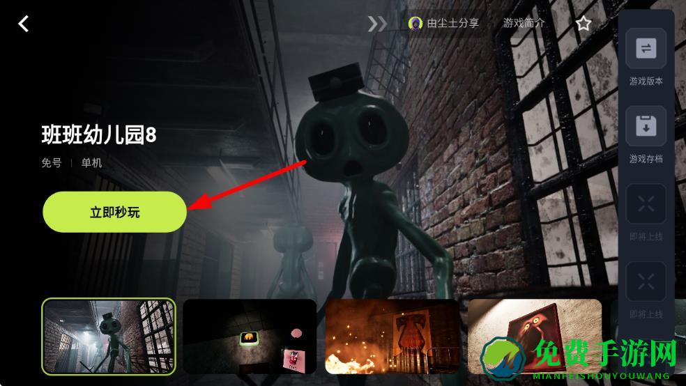 1、打开3a云游戏应用,找到想玩的游戏,比如班班幼儿园8,点击游戏界面中的立即秒玩按钮。