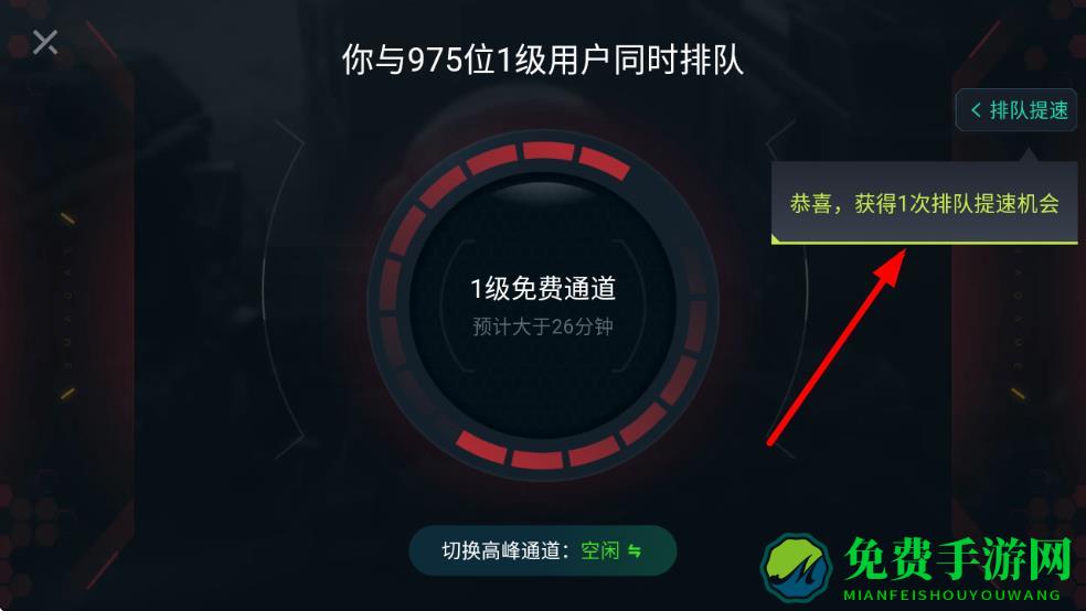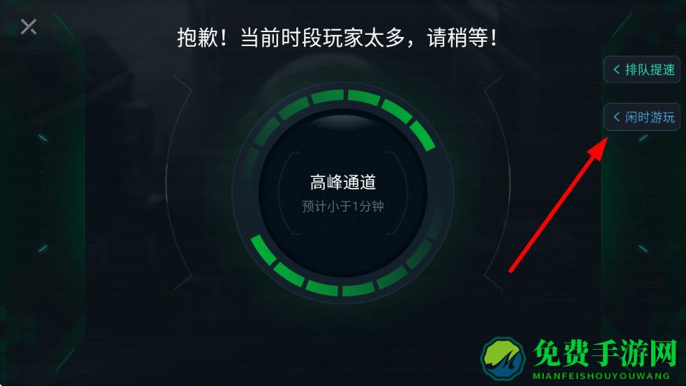 3、若当前排队人数众多,可在排队界面点击闲时游玩,选择玩家较少的时段,从而增加秒进游戏的几率。